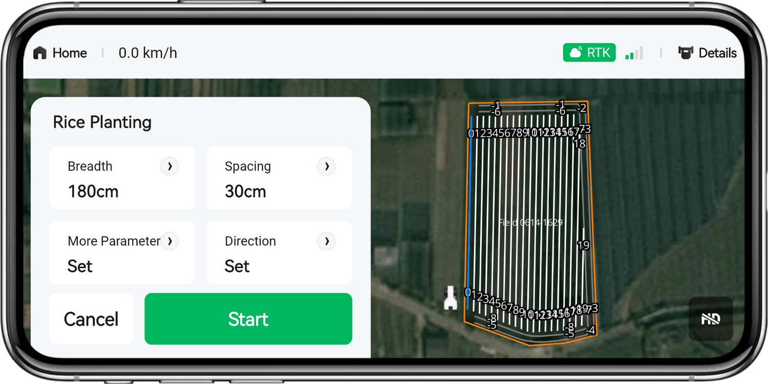 Generează automat trasee optime pentru o direcționare de înaltă precizie pe orice tip de teren. Informațiile despre câmp pot fi partajate cu dronele agricole XAG care operează în aceleași zone, creând o experiență agricolă conectată.
